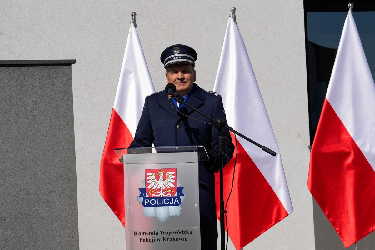 – To duma i honor stać tutaj w policyjnym mundurze i ślubować wierność narodowi, ślubować iż będzie strzegli bezpieczeństwa obywateli, mieszkańców Małopolski – nawet z narażeniem życia. Dzisiejszy dzień to przełom w Waszym życiu. To czas, który zapisze się dla Was, tak jak dla każdego, który zaczyna służyć drugiemu człowiekowi – mówił podczas uroczystości Komendant Wojewódzki Policji w Krakowie insp. Artur Bednarek. – Życzę żebyście z godnością nosili ten mundur, żebyście byli dumni z tego, że jesteście w tym mundurze. Żeby służba dawała Wam ogrom satysfakcji, żeby Was budowała i żeby Wasze rodziny były dumne, że służycie w Policji – dodał.