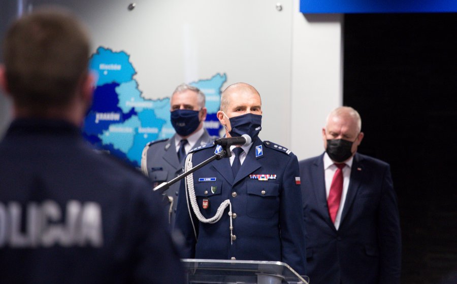 Ślubowanie od 17 policjantów, którzy zasilą szeregi Komendy Wojewódzkiej Policji w Krakowie, odebrał komendant wojewódzki policji – inspektor Roman Kuster. Pozostałe 62 osoby, które zostały przyjęte do służby od 20 kwietnia 2021 r. ślubowały w swoich jednostkach macierzystych.