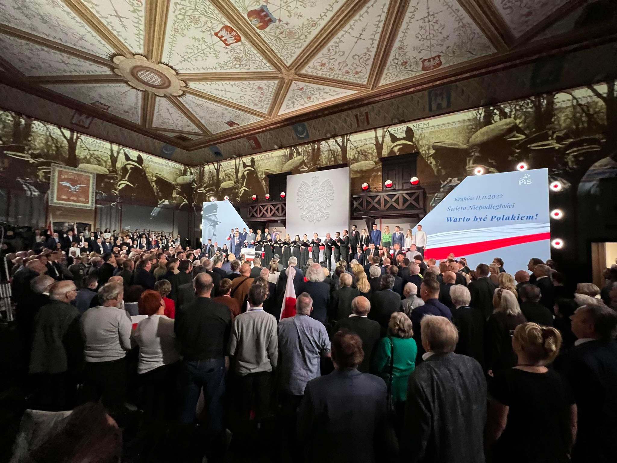 Do Krakowa na obchody Narodowego Święta Niepodległości przyjechali najważniejsi politycy PiS. Oprócz Jarosława Kaczyńskiego w hali Sokoła byli m.in. Mateusz Morawiecki, Piotr Gliński, Joachim Brudziński, Antoni Macierewicz, Ryszard Terlecki i Andrzej Adamczyk. Po spotkaniu prezes PiS w towarzystwie innych polityków PiS złożył kwiaty pod pomnikiem Józefa Piłsudskiego.