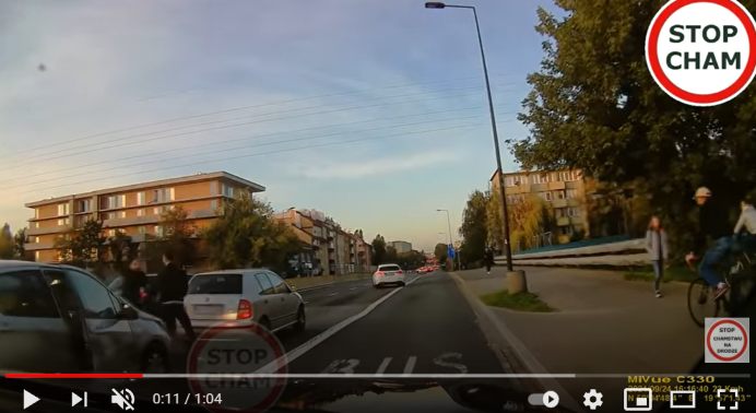 Na Al. 29 Listopada pobiło się dwóch kierowców. Filmik z tej bójki nagrał inny kierowca dokumentując, z jakie powodu powstał korek.