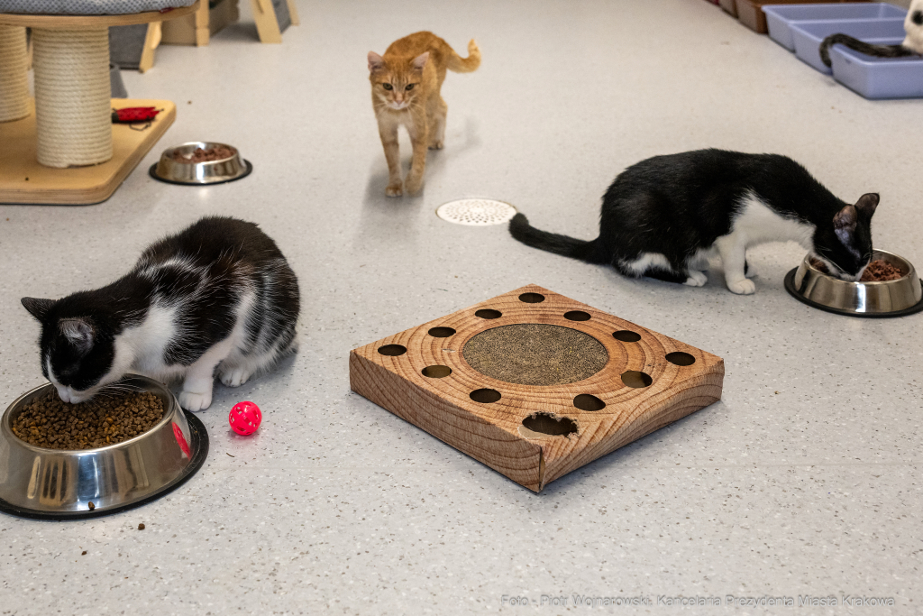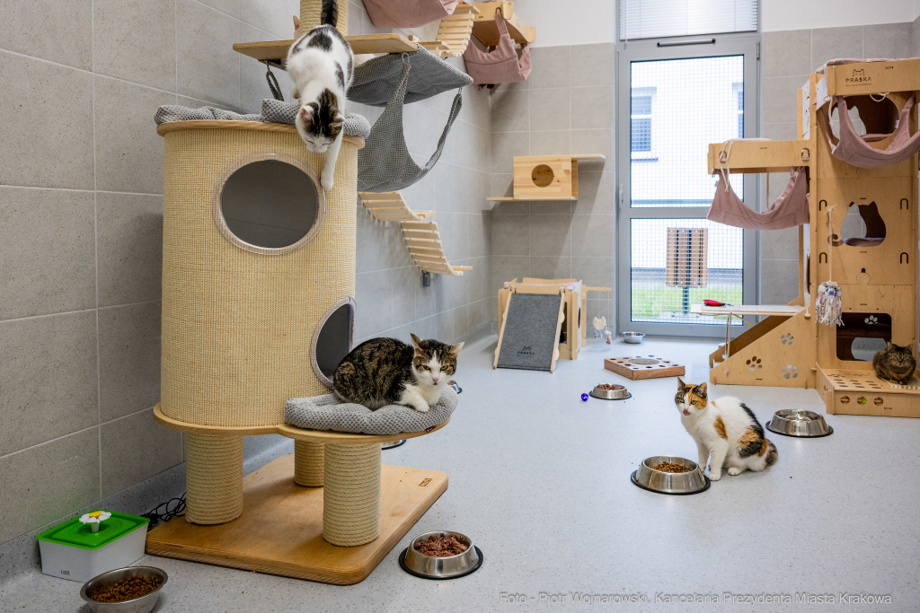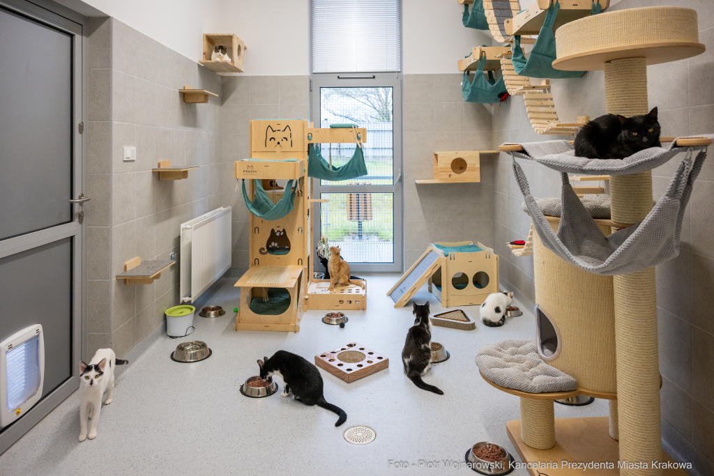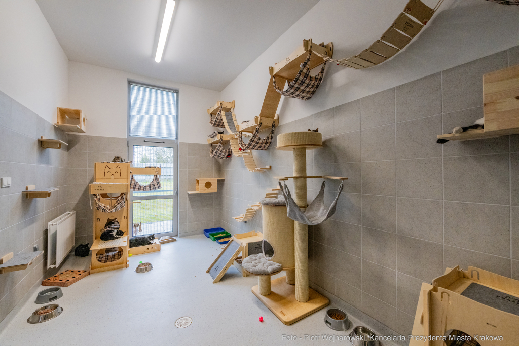 W schronisku dla bezdomnych zwierząt przy ul. Rybnej w Krakowie oficjalnie otwarty został nowy pawilon dla kotów. Ma 700 m kw. powierzchni i jest w nim pięć osobnych sal dla kotów oraz pomieszczenia do kwarantanny, gdzie zwierzęta są obserwowane. Budynek jest połączony korytarzami z pozostałymi pawilonami schroniska. Więcej o całej inwestycji pisaliśmy TUTAJ. Wczoraj schronisko odwiedził prezydent Jacek Majchrowski.