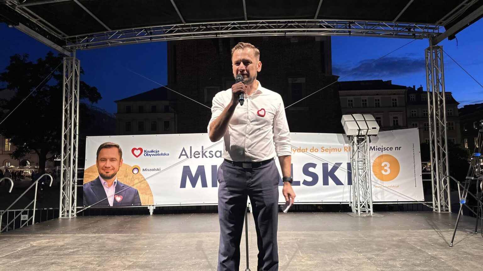 – To była najbardziej nierówna po 1989 roku kampanii wyborcza w historii polskiej demokracji. Rządząca partia użyła cały aparatu państwa, spółkę skarbu państwa, prorządowej telewizji, radia i gazet, by utrzymać władzę – mówił Aleksander Miszalski pod Wieżą Ratuszową. Kandydaci Koalicji Obywatelskiej na zakończenie kampanii wyborczej zorganizowali happening „Przegonimy mrok” ze spektakularnym pokazem światło-dźwięk.