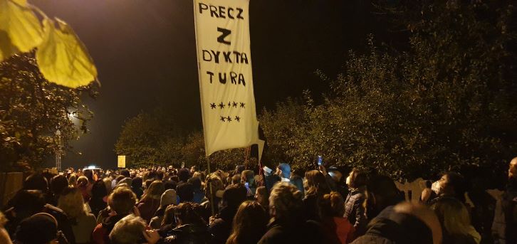 Protestujący przeciwko wyrokowi Trybunału Konstytucyjnego pojawili się w niedzielny wieczorem także pod domem posła i ministra infrastruktury Andrzej Adamczyka. Śpiewali hymn i krzyczeli „je… PiS”.