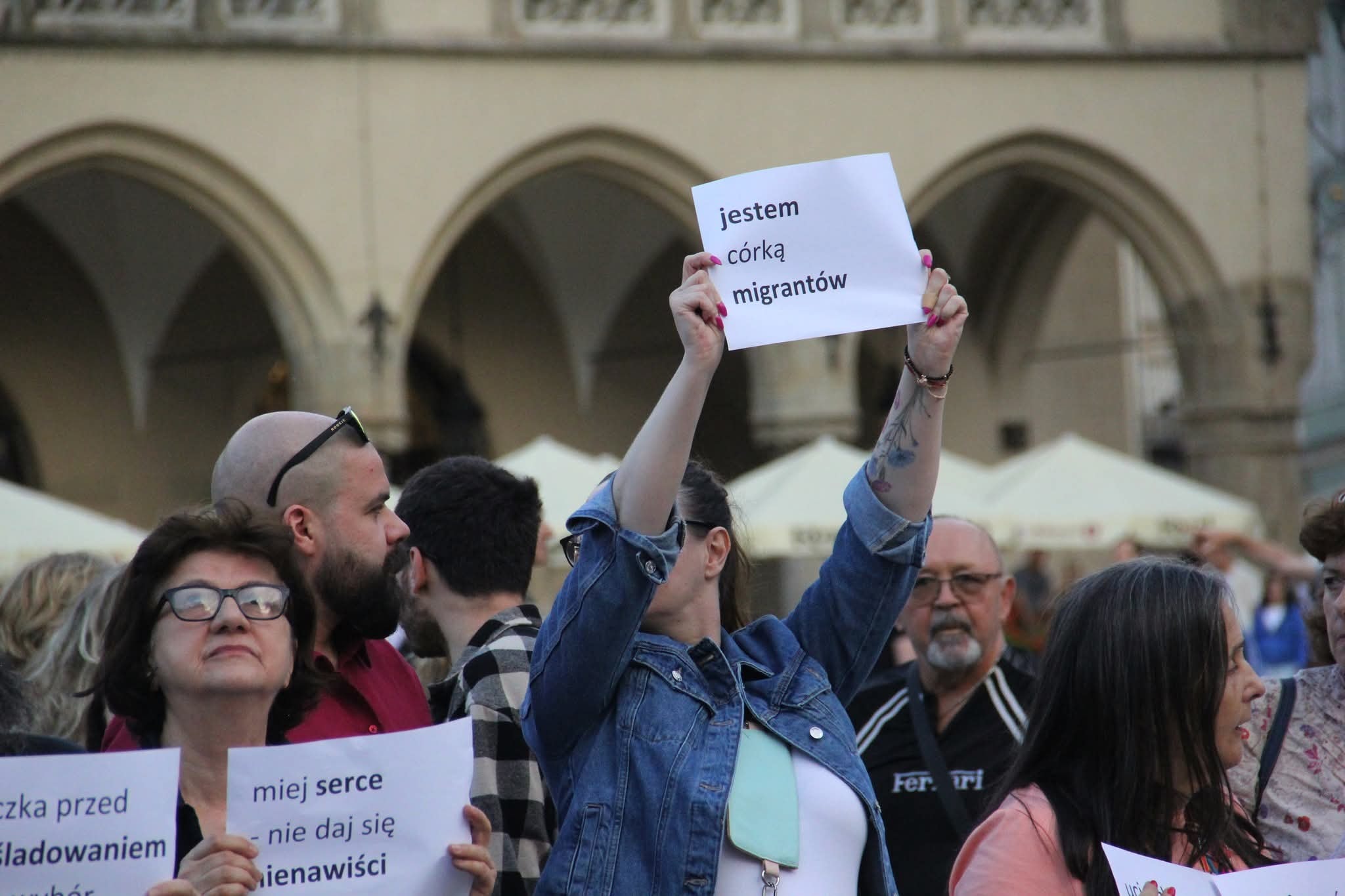 „Miej serce – nie daj się nienawiści”, „miej swój rozum – nie daj się straszyć”, „jestem córką migrantów”, „żaden człowiek nie jest nielegalny”, „każda z nas może kiedyś musieć uciekać” – z takimi hasłami mieszkańcy Krakowa stanęli wczoraj na Rynku Głównym w milczącym szeregu solidarności. W centrum miasta odbyła się pokojowa demonstracja przeciwko ksenofobii i straszeniu migrantami. Uczestnicy, trzymając w dłoniach kartki z własnoręcznie wypisanymi apelami, tworzyli żywy łańcuch ciągnący się wzdłuż Sukiennic, aż pod Wieżę Ratuszową. – Jako społeczeństwo obywatelskie powinniśmy powiedzieć: dość – mówiła Ewelina Pytel, Pełnomocniczka Prezydenta Miasta Krakowa ds. polityki równościowej.