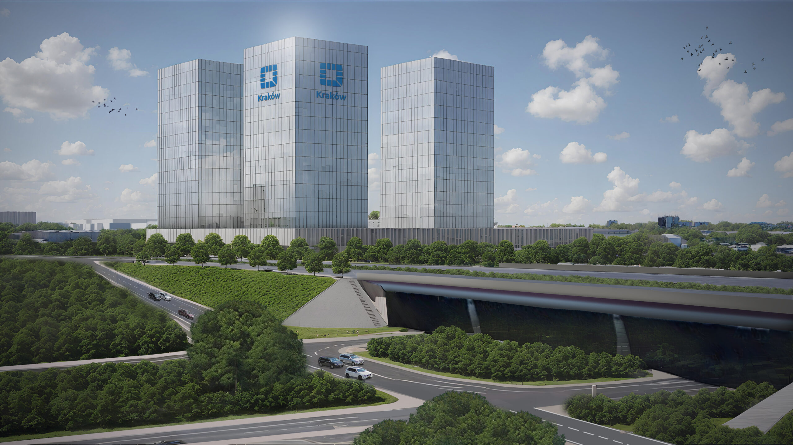 Część usługowa uwzględnia powstanie biurowców i centrum handlowego. Tu miałaby powstać wysoka zabudowa, która – jak wyjaśnia Fundacja – ma być bramą Krakowa.