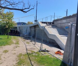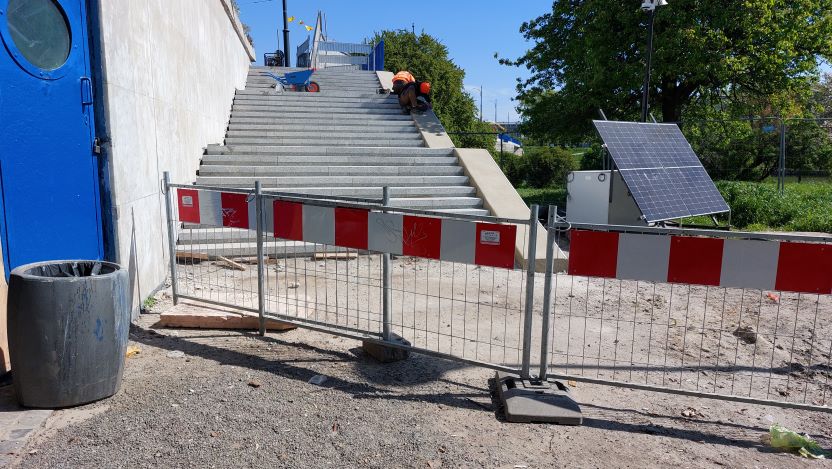 Urzędnicy zastrzegają, że z uwagi na trwające prace na spodzie konstrukcji przeprawy, wciąż mogą występować chwilowe utrudnienia w ruchu pieszym i rowerowym. Wciąż prowadzone są także prace przy budowie schodów od strony ronda Grunwaldzkiego, przy czym wejście na most od strony południowej jest prawie na ukończeniu, to schody po stronie północnej (od strony Centrum Sztuki i Techniki Japońskiej Manggha) dopiero powstają.