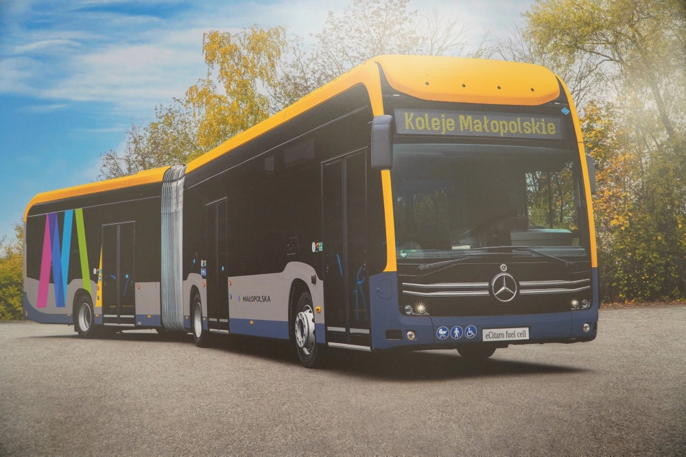 Do floty Kolei Małopolskich dołączą trzy autobusy 12-metrowe z 35 miejscami siedzącymi oraz dwa przegubowe, 18-metrowe, z 47 miejscami. Pojazdy łączą napęd elektryczny z ogniwem paliwowym wykorzystującym wodór, co pozwala uzyskać zasięg do 600 kilometrów na jednym tankowaniu.
