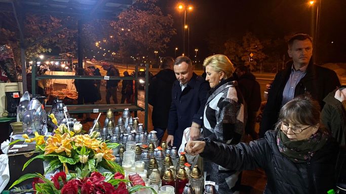 Już po zmroku prezydent Andrzej Duda z małżonką Agatą Kornhauser-Dudą pojawili się przed cmentarzem Rakowickim w Krakowie. Na jednym ze stoisk kupowali znicze. To była prywatna wizyta pary prezydenckiej na najważniejszej nekropolii w Krakowie.