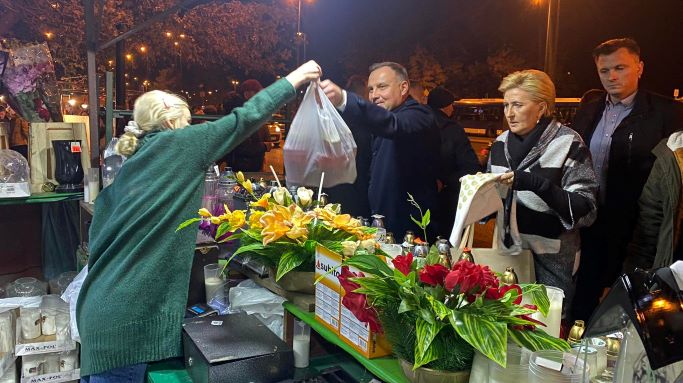 Prezydent z małżonką kupują znicze przy cmentarzu [zdjęcia]