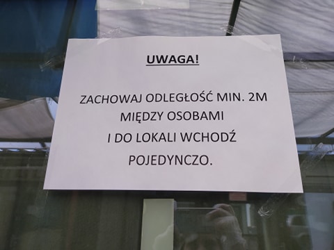 Przy większości stoisk znajdują się tabliczki z zakazami i nakazami. Sprzedawcy proszą o zachowanie odpowiedniej odległości czy wchodzenia do sklepu pojedynczo.