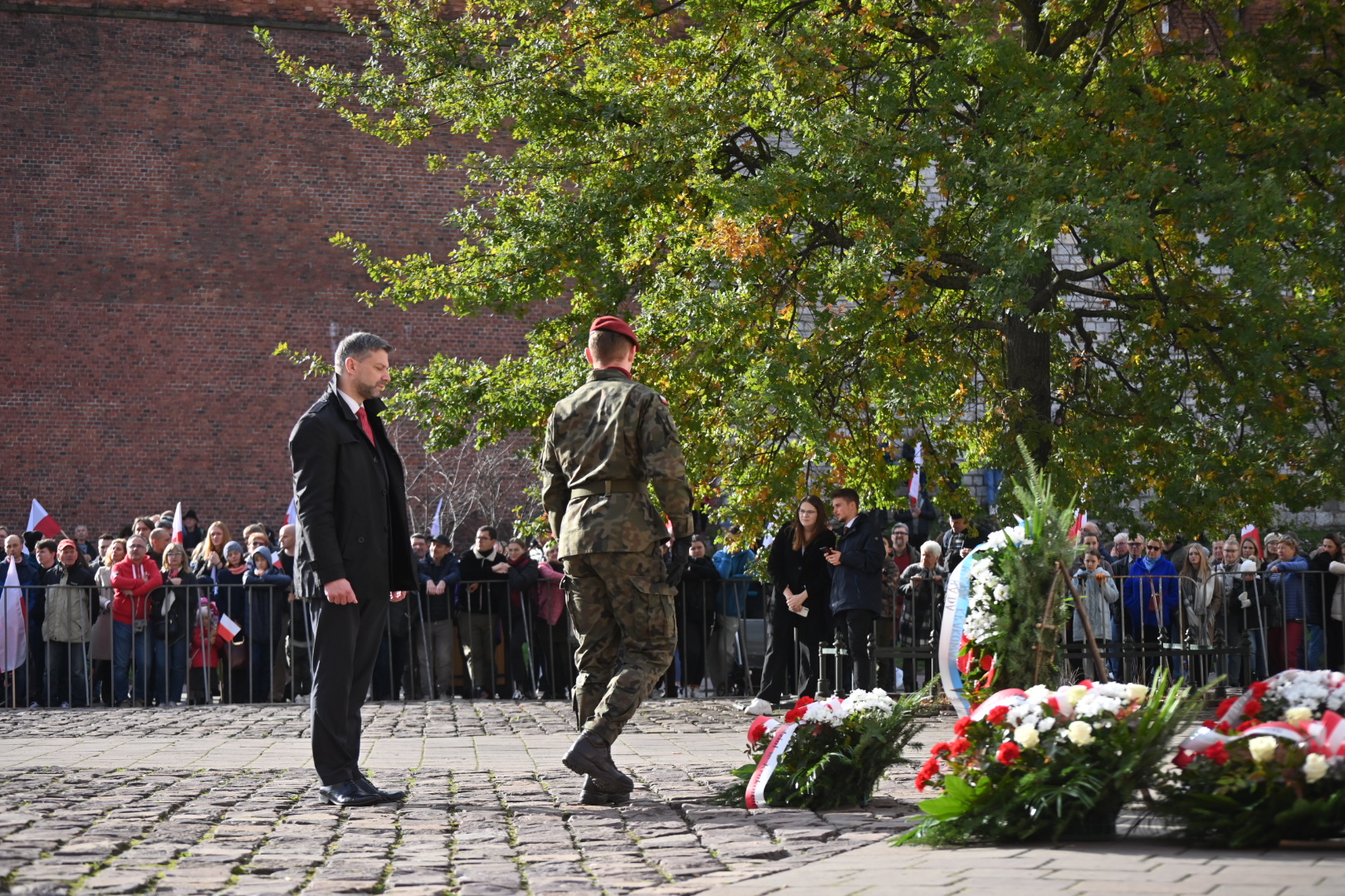 Oficjalnie obchody Narodowego Święta Niepodległości rozpoczęły się od złożenia kwiatów pod pomnikiem marszałka Józefa Piłsudskiego, znajdującym się u zbiegu ulic: Piłsudskiego, Wenecja i Garncarskiej w Krakowie. Symboliczne wiązanki zostały także złożone w krypcie pod Wieżą Srebrnych Dzwonów przy sarkofagach marszałka Piłsudskiego oraz u pary prezydenckiej Lecha i Marii Kaczyńskich.