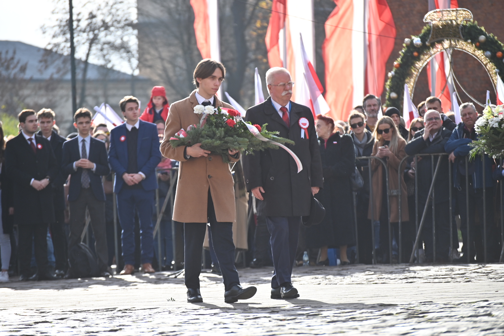 Oficjalnie obchody Narodowego Święta Niepodległości rozpoczęły się od złożenia kwiatów pod pomnikiem marszałka Józefa Piłsudskiego, znajdującym się u zbiegu ulic: Piłsudskiego, Wenecja i Garncarskiej w Krakowie. Symboliczne wiązanki zostały także złożone w krypcie pod Wieżą Srebrnych Dzwonów przy sarkofagach marszałka Piłsudskiego oraz u pary prezydenckiej Lecha i Marii Kaczyńskich.