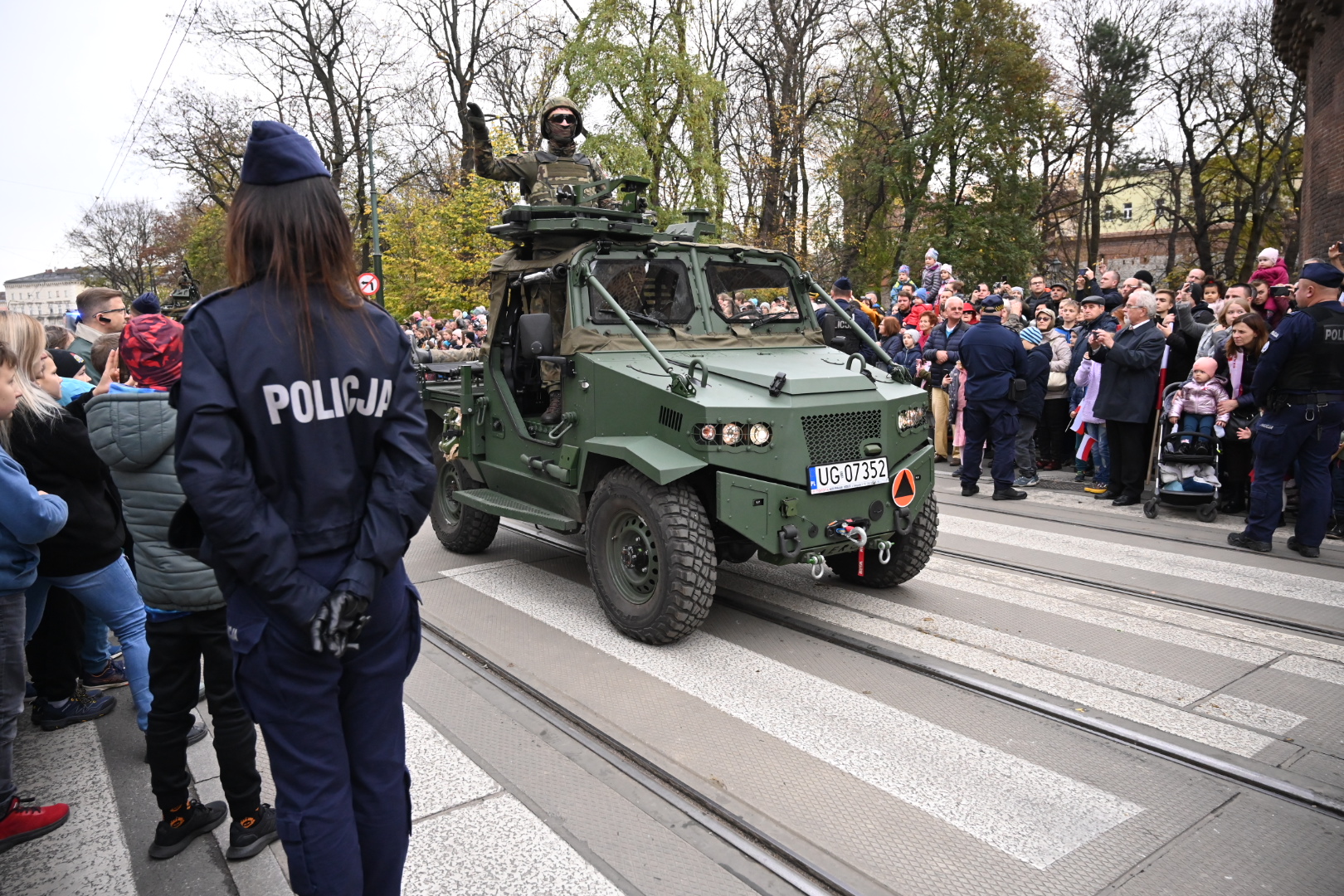 Defilada wojskowa zakończyła oficjalną część obchodów Narodowego Święta Niepodległości w Krakowie. Tym razem oprócz koni i wozów bojowych można było podziwiać także samoloty wojskowe. A po defiladzie można było skosztować wojskowej grochówki. Chętnych na gorącą zupę nie brakowało…